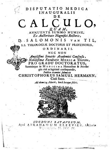 Read Online Disputatio Medica Inauguralis, de Calculosis; Quam, ... Pro Gradu Doctoris, ... Eruditorum Examini Subjicit Gulielmus Gough Meylett, ... Epub Internet Archive